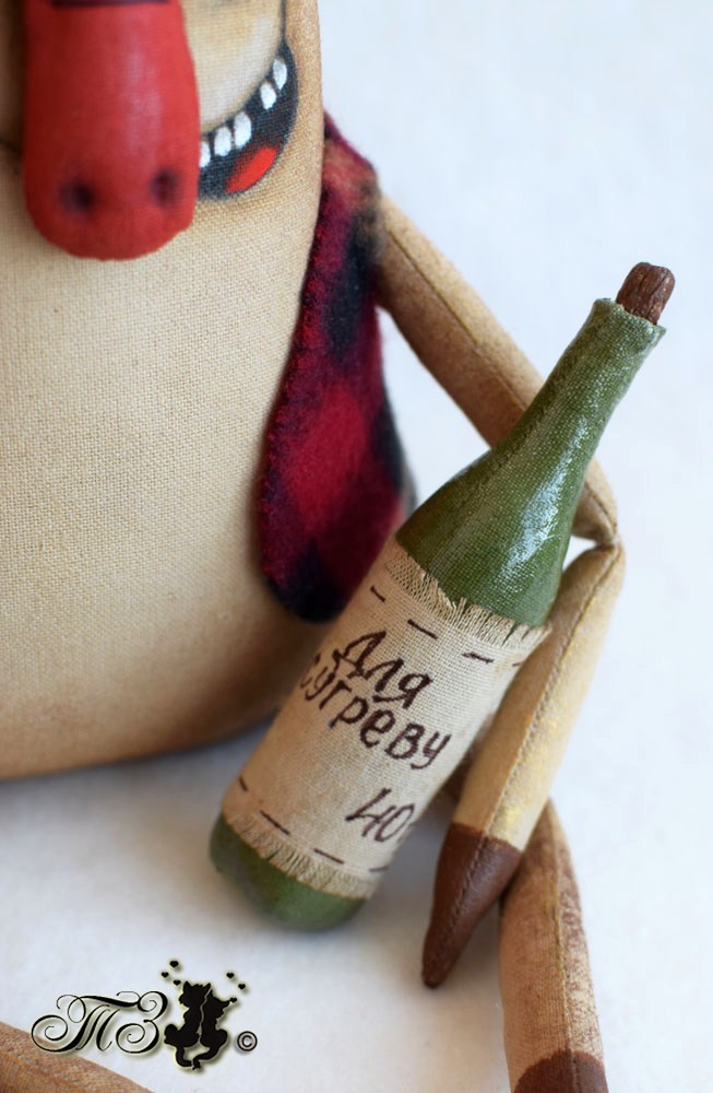 Размер лосиков - 19 см (сидя). Бязь, кофейная тонировка, флис, акриловые краски, масляная пастель. Все аксессуары, в том числе и бутылка, текстильные.